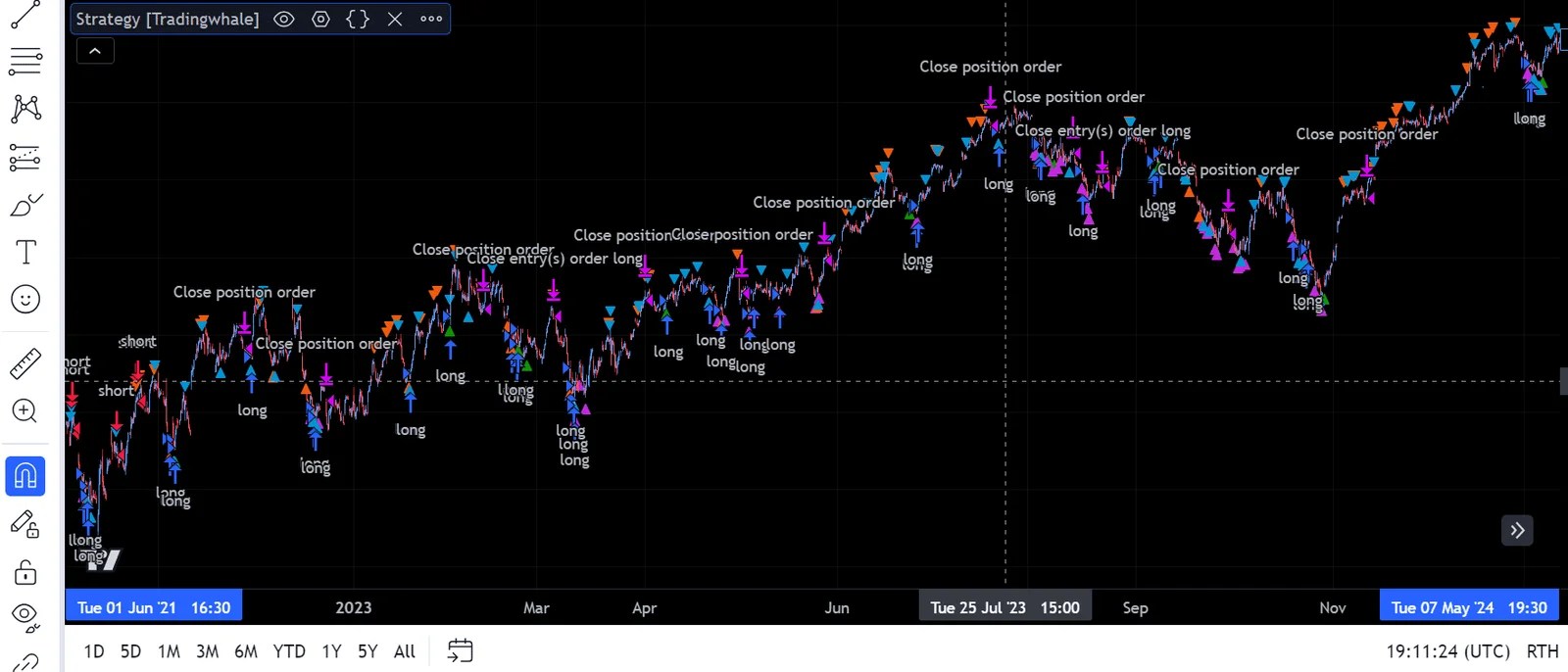 - Direction and Exit: Trade long, short, or both, and exit trades automatically with a signal in the opposite direction.